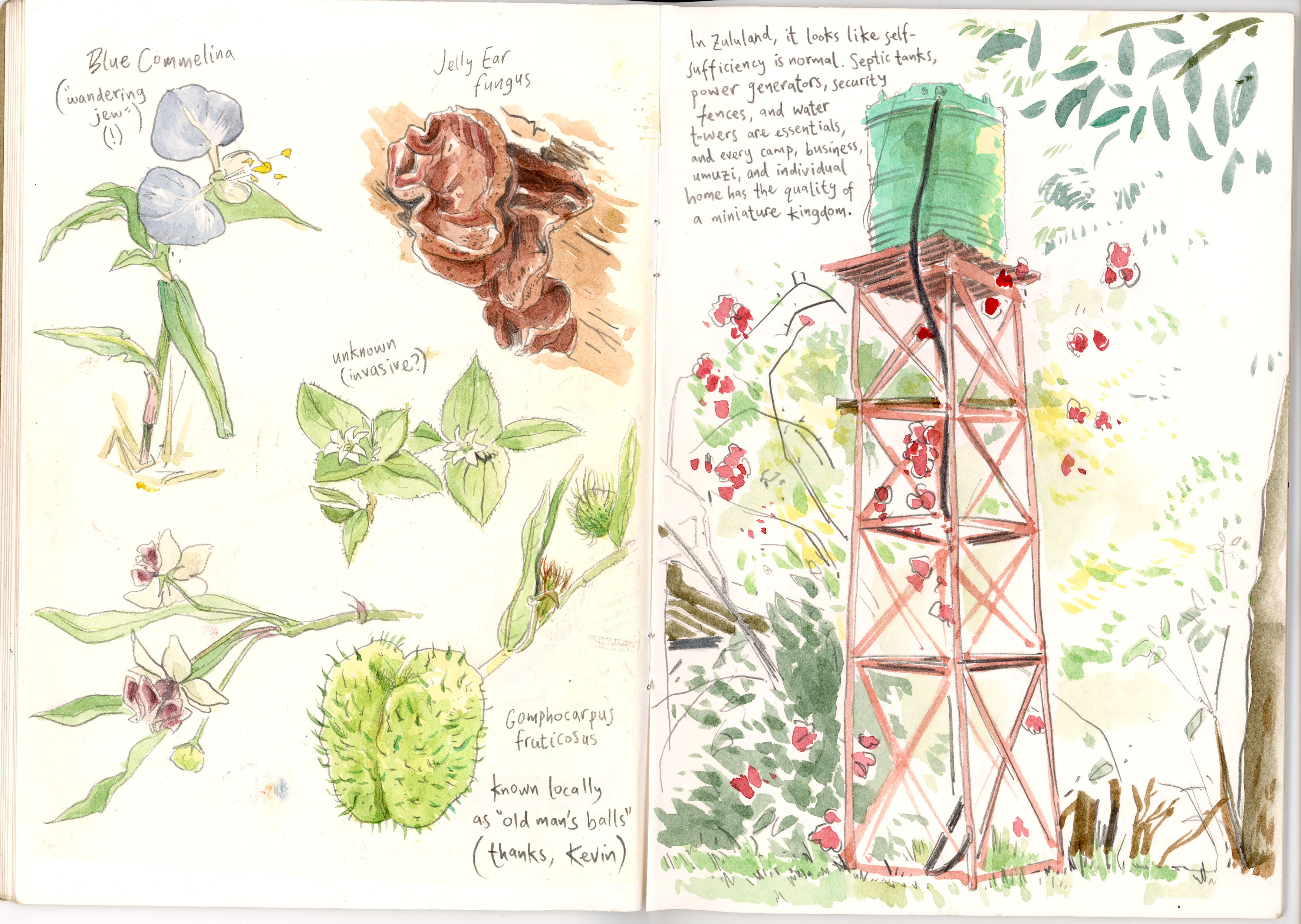 I’m an illustrator and a bit of a writer, and was set to go to the wildlife reserves of KwaZulu-Natal in the east of South Africa for two weeks as part of CBCC (Children’s Books Creators for Conservation, founded just this year by Hayley and John Rocco), ostensibly with the aim of conducting visual research in sketchbooks for a potential book about the subject of wild animal conservation.