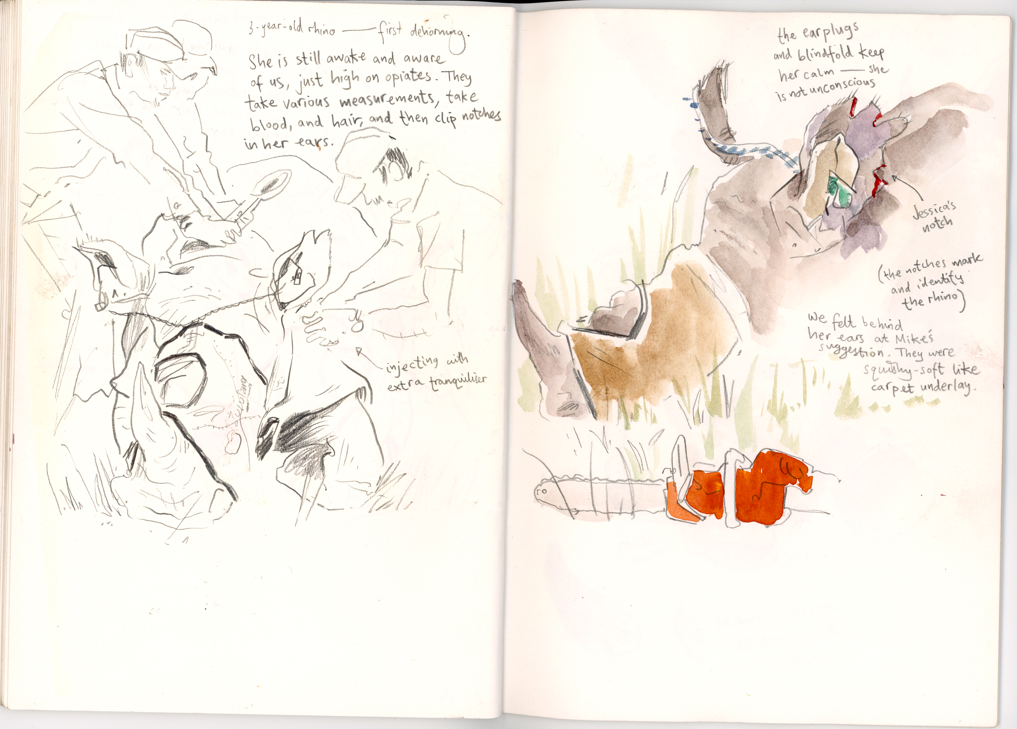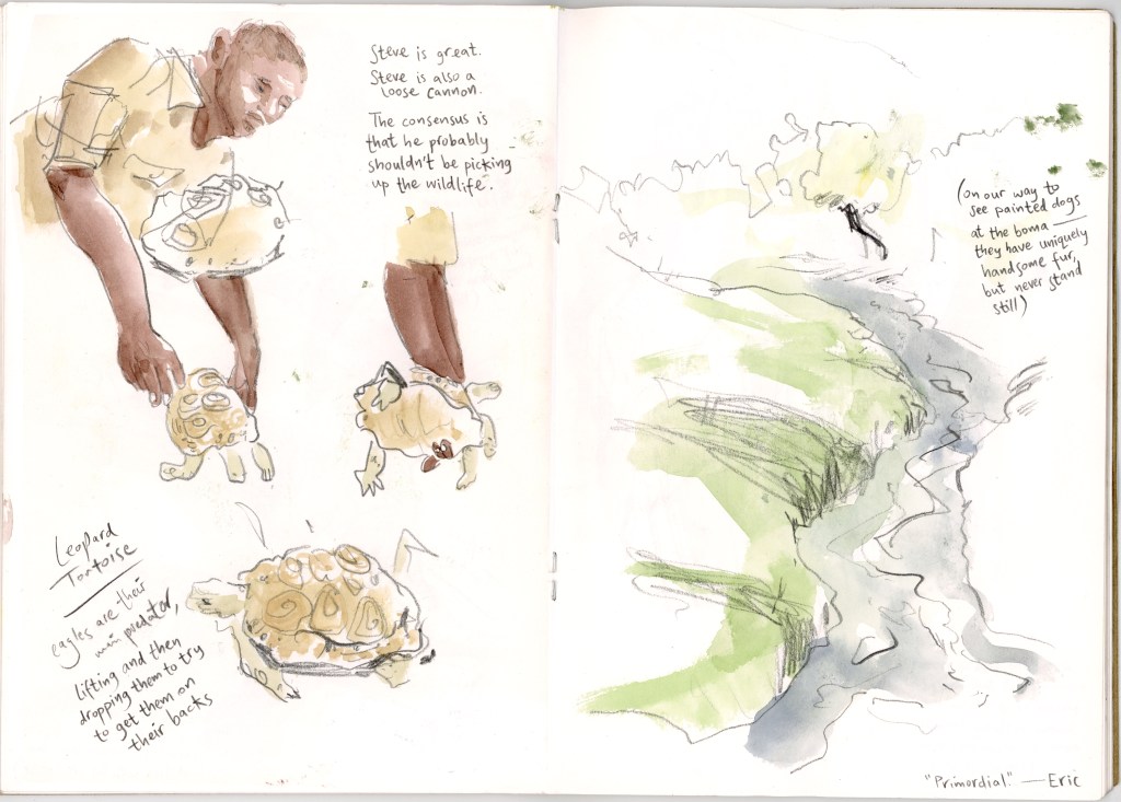 Can a drawing capture something that a photograph or a video can’t? Again and again people told me, yes, it can. Drawing opened up conversations with rangers, landowners, vets, locals, and fellow tourists from all over, and what wonderful conversations they were: driven by their love and awe for what was in front of us, a love and awe that they helped me to discover too.