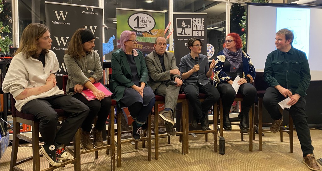 On Monday I had the immense honour of being invited to Waterstones Piccadilly to speak alongside the six other shortlisters for the First Graphic Novel Award on a panel hosted by the inimitable Alex Fitch of Panel Borders, who asked us some pretty challenging and revealing questions about our shortlisted graphic novels.